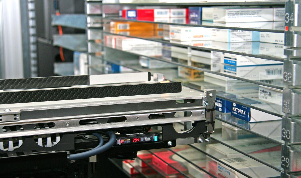 plassert. Den sorterer og lagrer alt på små glasshyller inne i automaten og husker til enhver tid hvor alt befinner seg. Herfra henter den fram det som tastes inn i resepturen. Legemidlene blir levert i en luke rett bak skranken. Automaten er en av en håndfull tilsvarende automater i drift på norske apotek.