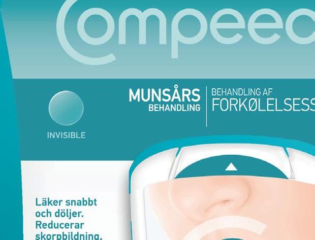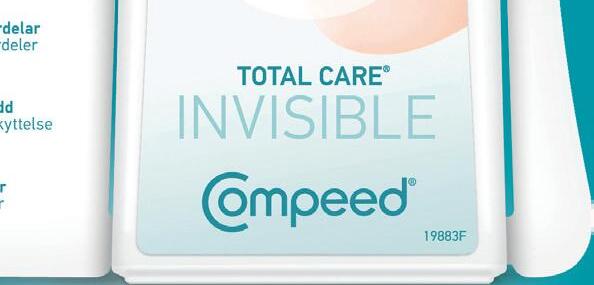 Compeed ® Total Care™ Invisible munnsårplaster gir en effektiv behandling av munnsår ved å hjelpe såret til å gro raskt og ved å redusere utviklingen av skorper.