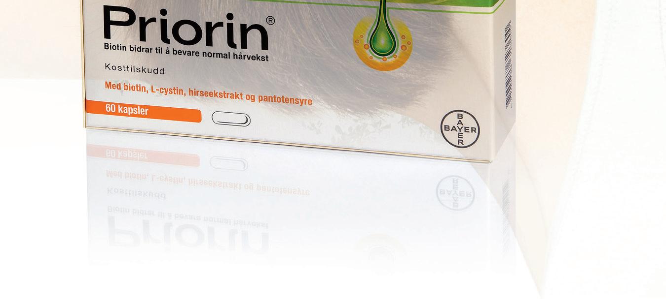 Priorin kosttilskudd med Biotin gir hårroten næring innenfra som bidrar til å bevare en normal hårvekst. Priorin har en unik sammensetning av biotin, l-cystin, hirseekstrakt og pantotensyre. Hårrøttene spiller en viktig rolle for hårets vekst. Det er her hårcellene dannes og håret får sin farge. Derfor er det viktig at hårrøttene får en optimal tilførsel av næringsstoffer. På grunn av hårets langsomme vekst bør Priorin brukes i 3-6 måneder for å oppnå best mulig resultat. 1 kapsel per dag. Les mer om Priorin på www.priorin.no