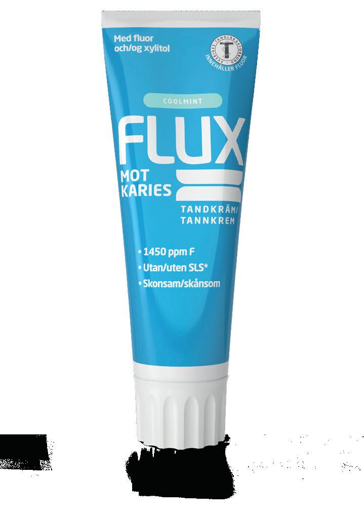 Flux har utvidet sin familie av munn- og tannprodukter med tannkremer tilpasset hele familien. Fluortannkremene har et høyt innhold av fluor for sterke tenner og effektiv beskyttelse mot karies. De er uten såpestoffer (SLS), allergener og mikroplast. Med gode smaker tilpasset både store og små.