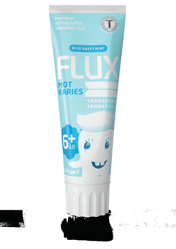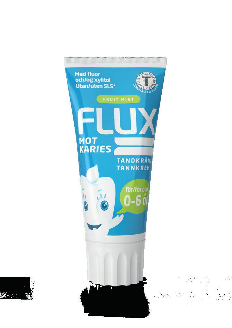 Flux har utvidet sin familie av munn- og tannprodukter med tannkremer tilpasset hele familien. Fluortannkremene har et høyt innhold av fluor for sterke tenner og effektiv beskyttelse mot karies. De er uten såpestoffer (SLS), allergener og mikroplast. Med gode smaker tilpasset både store og små.