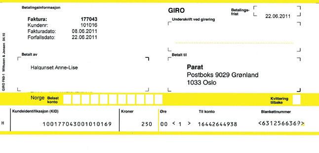 Parat, Boks 9029 Grønland, 0133 OSLO