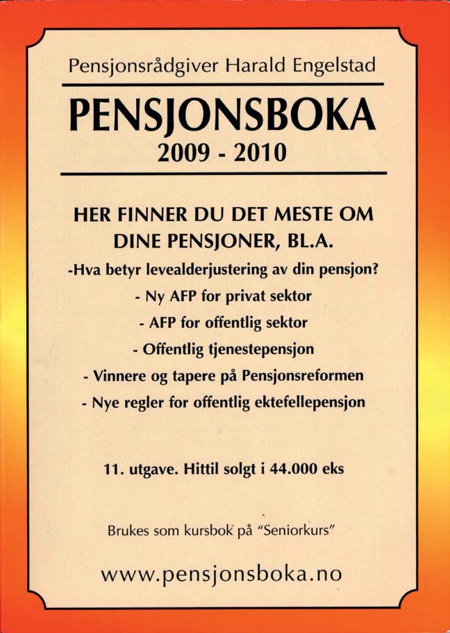 Det er lagt ut informasjon om pensjon på vår nye hjemmeside. Mer informasjon vil komme. NAV har laget en egen side, www. deterdinpensjon.no. På denne siden finner du mye god informasjon. Du kan blant annet få beregnet din egen pensjon, og se hva det betyr om du går av ved 62 år, eller om du velger å vente med å ta ut pensjon til senere.