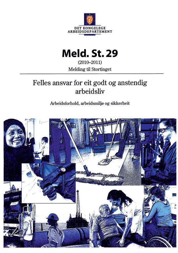 I august i år ble det for første gang lagt fram en melding til Stortinget om arbeidsforhold, arbeidsmiljø og sikkerhet i norsk arbeidsliv. Stortingsmelding nummer 29 (2010-2011) «Felles ansvar for et godt og anstendig arbeidsliv» gir Stortinget mulighet til å drøfte grunnleggende forhold og utfordringer i arbeidslivet.