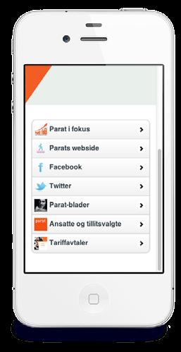 Parat har utviklet en app som gir deg kontaktdata på alle ansatte i Parat, enkel tilgang på Parat i sosiale media, inklusive websider. I tillegg kan du finne, og raskt slå opp i, tariffavtalen som gjelder ditt avtaleområde. Du kan selvfølgelig også lese Parat-bladet.