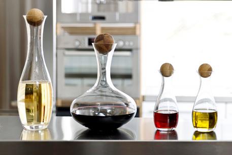 Premie: Karaffelsett fra Sagaform. Leveres i gave-eske som inneholder karaffel til: Rødvin, hvitvin/ vann, olje og eddik (se foto).