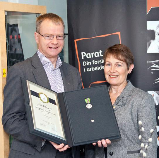 Trond R. Hole overrakte onsdag Norges Vels medalje for lang og tro tjeneste til Parats rådgiver i Bergen, Laila Sæterdal.