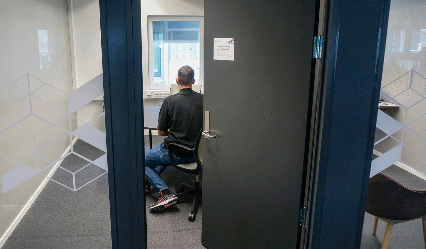 Med utsikt til byggeplassen kan ansatte i Kommunal – og moderniseringsdepartementet endelig teste ut hvordan det vil bli å jobbe i det nye regjeringskvartalet. 8