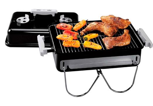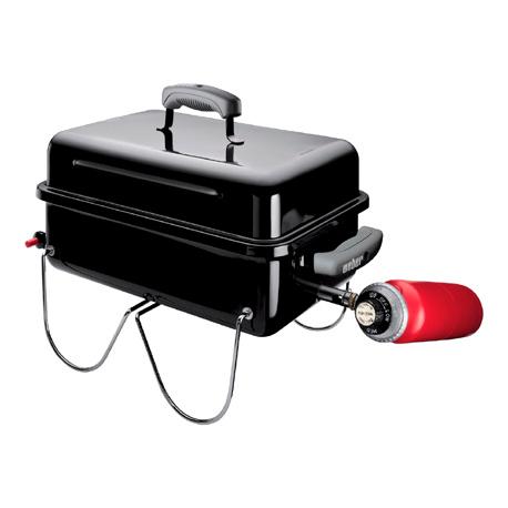 Premie: Bærbar gassgrill, Weber Go-Anywhere, med grillflate som måler 41 x 25 cm. Utvendige mål (høyde, bredde, dybde) er 37 x 53 x 31 cm. Enkel å frakte (se foto).