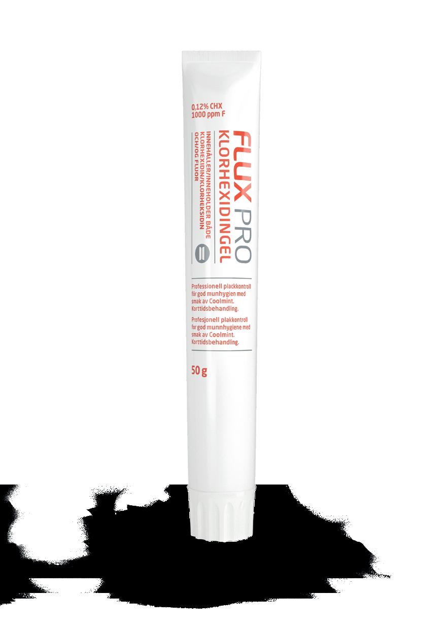 Flux PRO Klorhexidin inneholder både klorheksidin og fluor. Produktene er for kortidsbehandling eller etter anbefaling fra tannhelsepersonell. Som øvrige Flux produkter er de uten alkolhol og parabener. Utviklet i samarbeid med skandinavisk tannhelse.