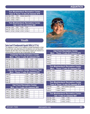 AQUATICS AQUATICS Tom Muehlenbeck Recreation Center Tues & Thurs / 4 wks (8 classes) $79 Start Date 9:00A