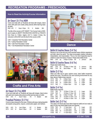 RECREATION PROGRAMS - PRESCHOOL How to Read the Activity/Course Information