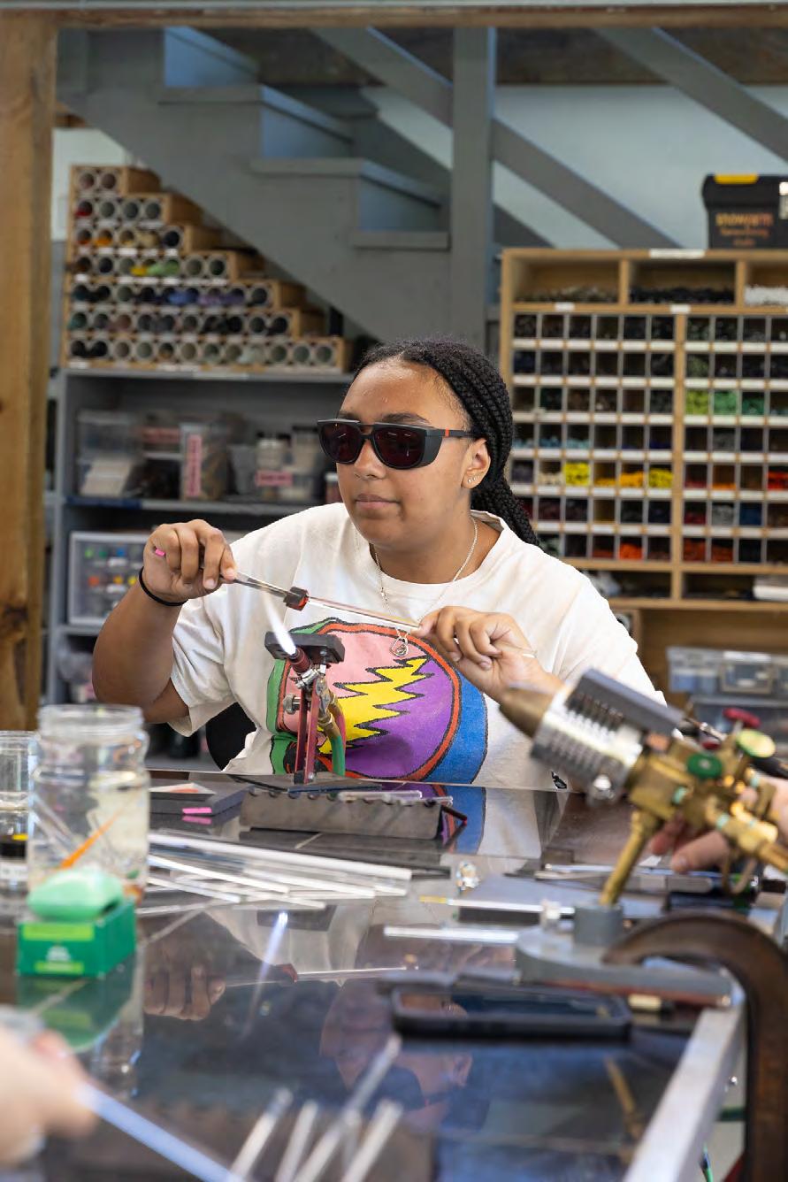 real world skills, and the confidence to put them to good use. Dedicated studio time is balanced with trips into town, a visit to a local art museum, and fun on-campus activities. Studio practices include ceramics, flameworking, metalsmithing/jewelry, sculpture, painting/ drawing, and stained glass/mosaics (students pick two to focus on during the two week program). Perfect for building a portfolio for undergraduate level art school applications. Intensive, hands-on studio art program for high school aged teens at a converted old dairy farm in the Berkshire hills. Program Dates from July 5 – July 18, 2026. https://snowfarm.org/teens