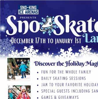 � Olympia’s seasonal ice rink, Oly on Ice, is back for your gliding and sliding pleasure this winter. You’ll find the rink in Isthmus Park in downtown Olympia; dress warmly, and it’s recommended to book your skating session online ahead of time to avoid disappoint ment. Open daily through Jan. 16, including on Christmas Day and New Year’s Day. Admission costs $9–$15; $5 for tots ages 3 and younger (entry includes skate rental). parentmap.com/oly-on-ice