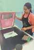 Making beaded friendship rings and bracelets at Camp Fire day camp at Lincoln Park.