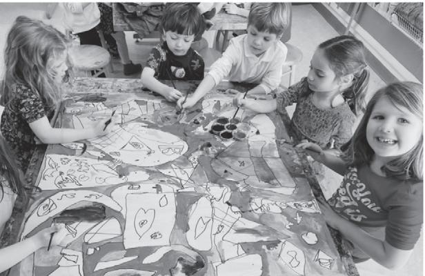 Even if a school has its own backyard or outdoor space, taking children to local parks, playgrounds, and gardens lends itself to nature investigations, physical activities, studies of landscapes and skyscapes, watching and listening to birds and insects, and so much more. Many city parks have public art to simply sit and observe. It is completely immersive. Who knew four- and fiveyear-olds could learn about modern artists like Sol LeWitt, Roy Lichtenstein, and Elizabeth Catlett by just simply walking through