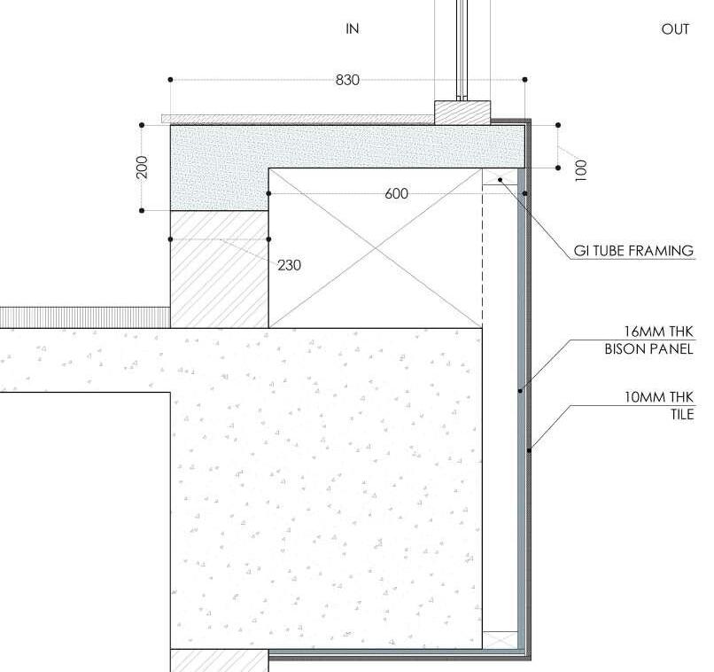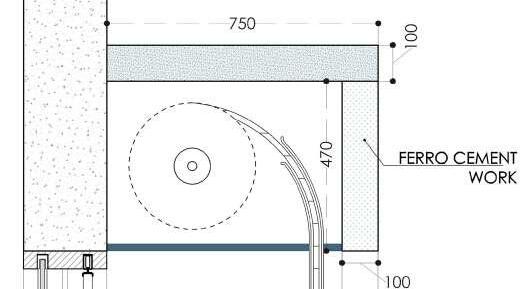 Roller shutter above the mezzanine floor opening to be prvided with chajja extensions by ferro cement structure.