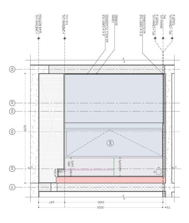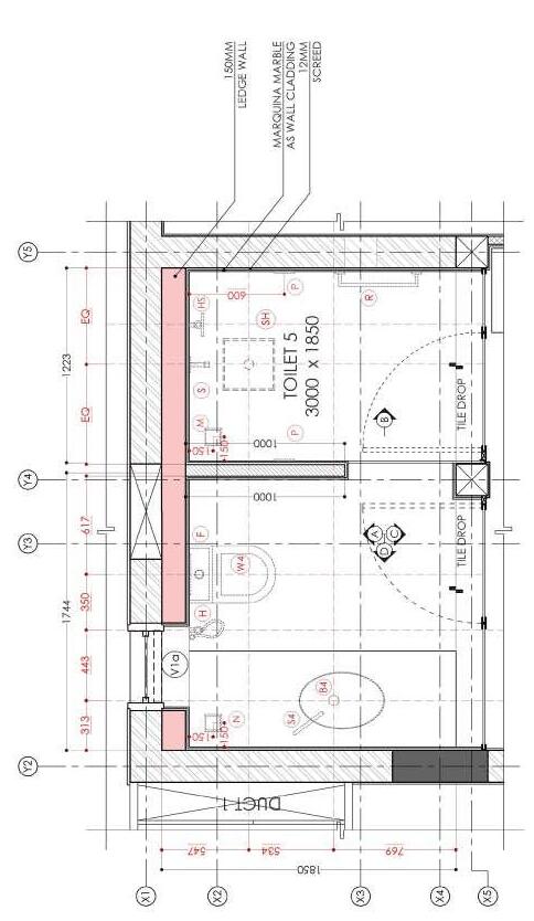 Skew in the room size was observed and remeasured for future drawing corrections.