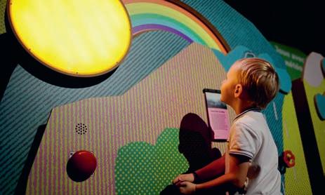 Un parcours ludique pour une première exploration du cosmos. C’est une petite exposition conçue comme une aire de jeux à parcourir pieds nus (ou en chaussettes). On tourne des manivelles pour comprendre la météo ou pour découvrir pourquoi la Lune change de forme, et pourquoi le ciel n’a pas toujours la même couleur. On s’installe dans une petite cabane pour regarder le ciel, avec ses étoiles filantes, ses satellites, ses aurores boréales… On observe de la poussière de Lune, on grimpe dans une minifusée et on prend la pose dans une combinaison spatiale. Outre ces dispositifs interactifs qui incitent les enfants à collaborer, on peut aussi, à travers un court film de Thomas Pesquet, découvrir le quotidien des astronautes : ce que l’on mange et ce que l’on fait à bord d’une station. On observe une vraie combinaison et on s’intéresse aux chiens cosmonautes. Il y a aussi un espace pour jouer avec des petites figurines et un autre pour se reposer dans des poufs avec des super albums jeunesse. Des animations sont régulièrement proposées dans l’exposition. Et pour les petits curieux, il y a des fiches d’infos accrochées un peu partout. n