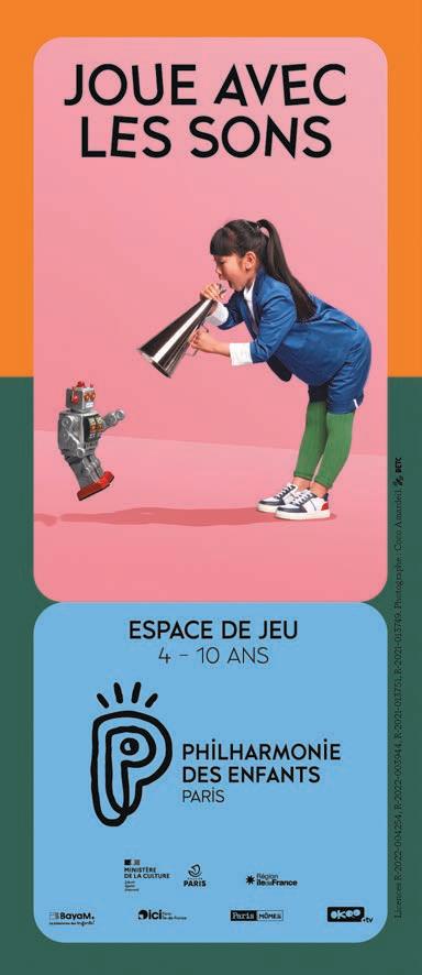 u 3 avril–30 août. Parcours. Le Son des pixels. La Philharmonie des enfants (Paris 19e). Ce nouveau parcours sonore immersif propose aux familles de pénétrer l’univers des jeux vidéo, avec ses bruitages, ses personnages et ses ambiances musicales. Les enfants retrouvent de grands classiques connus de tous et découvrent les œuvres musicales de l’artiste invité, Cartridge 1987. Par l’écoute et l’expérimentation, ils abordent une culture en constante évolution, dans un moment de partage avec leurs parents. De nombreuses surprises attendent les visiteurs tout au long de ce parcours, conçu en écho à l’exposition Vidéo Games & Music à la Philharmonie de Paris. l 4-10 ans. Tarif : 39 € (2 adultes + 1 enfant ou 2 enfants + 1 adulte) M° Portede- Pantin. Philharmoniedeparis.fr.