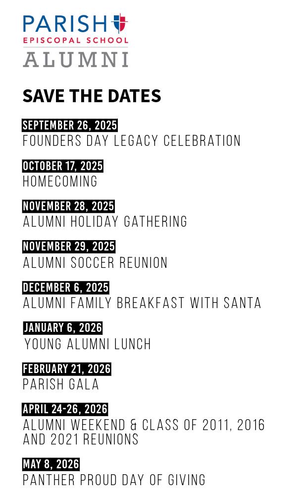 Much like the shimmer of a black panther’s spots, it’s exciting to watch our drill team’s sparkling magic during Friday night lights or at the annual Rosettes Revue. The Rosettes have evolved over the years from that first group that performed in football jerseys. With each new squad and each new member, the team is infused with a little extra. They’ve won countless awards at competitions; they have their own showcase every year; they teach the younger generation of Rosettes through mini clinic with our Lower School students; and they bring new routines and fresh ideas time and again! Now, they’d like to bring another fresh idea to the community – a new Rosettes logo. As they ready themselves for a milestone anniversary to celebrate 15 years in fall 2026, they’re once again coming to the Parish Panther community for help. Rosettes would like to hear and/or see your ideas for a refreshed brand mark – something that speaks to the strong foundation of the team, the energy they bring to every event and the future that awaits them!