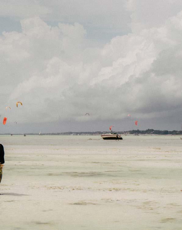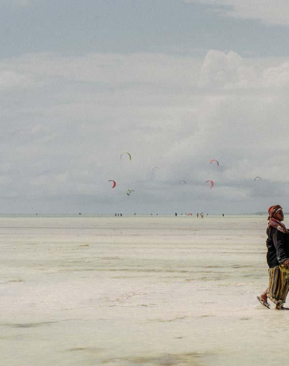 tides. In Zanzibar, the rhythm is different. The tide withdraws dramatically, revealing a completely different world where farming replaces fishing and the ocean floor becomes a workspace.
