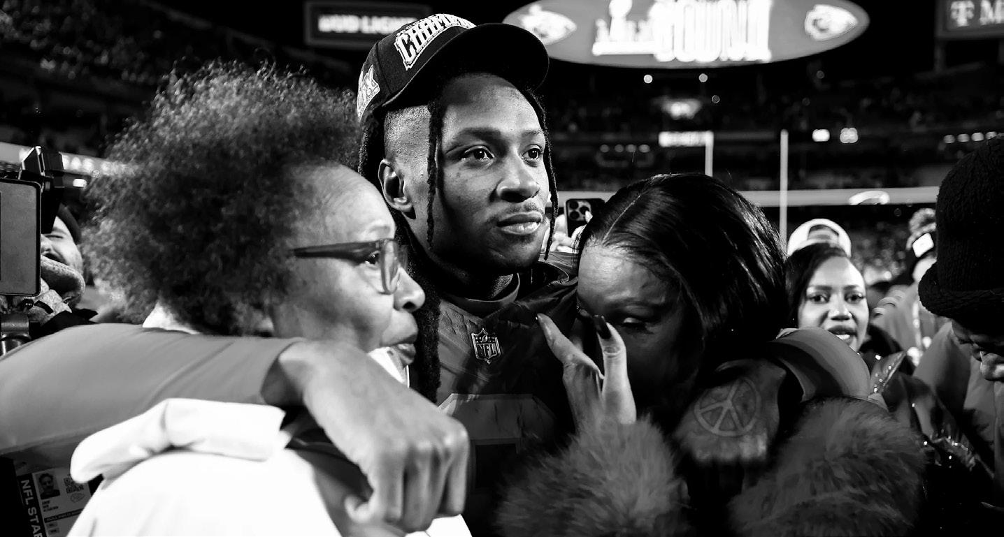 The Chiefs celebrated their AFC Championship win over the Buffalo Bills, including Travis Kelce and Taylor Swift, left; Andy Reid, above; and DeAndre Hopkins, his mother, Sabrina Greenlee and godmother, Frances Hicks, below.