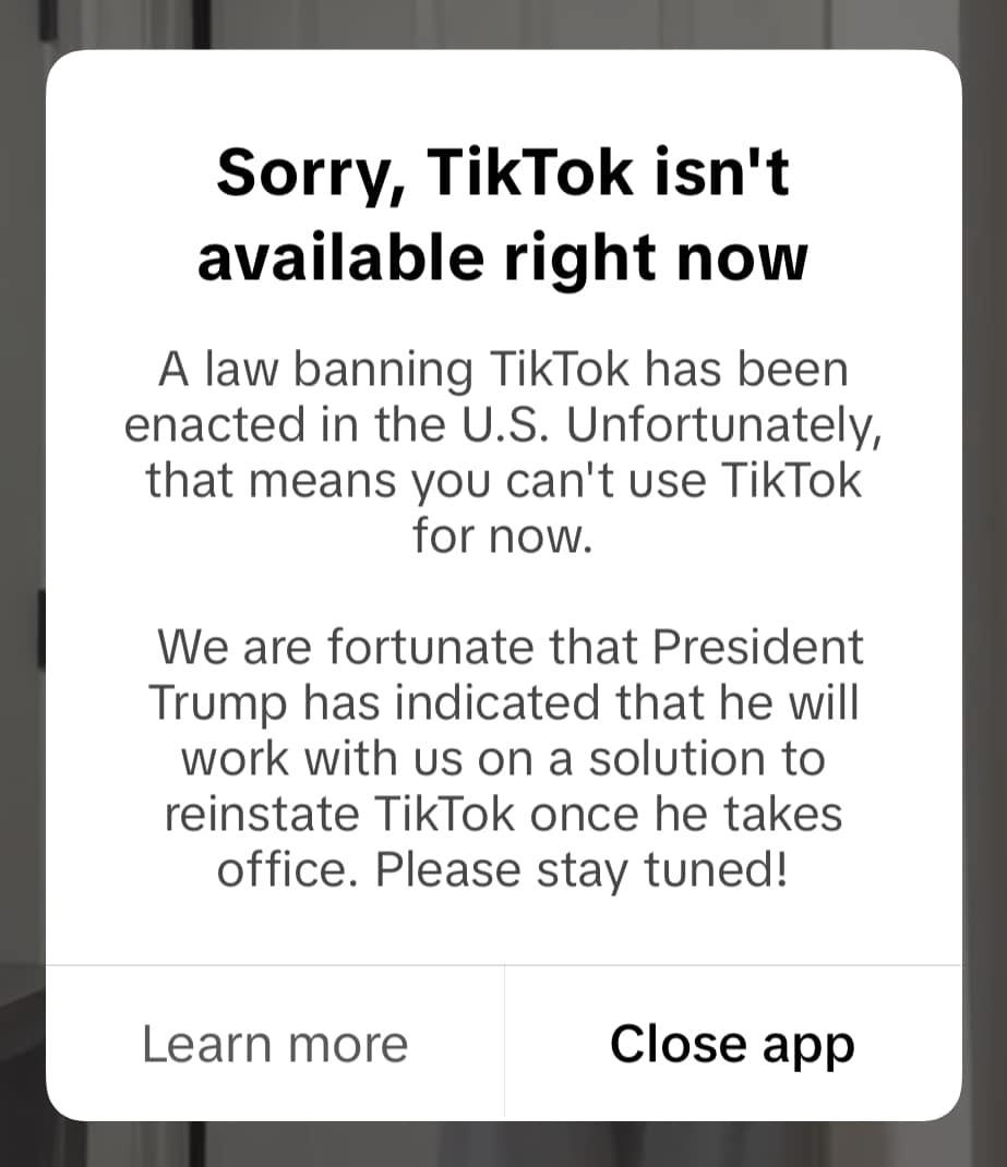 The TikTok app briefly shut down before Trump paused the ban.