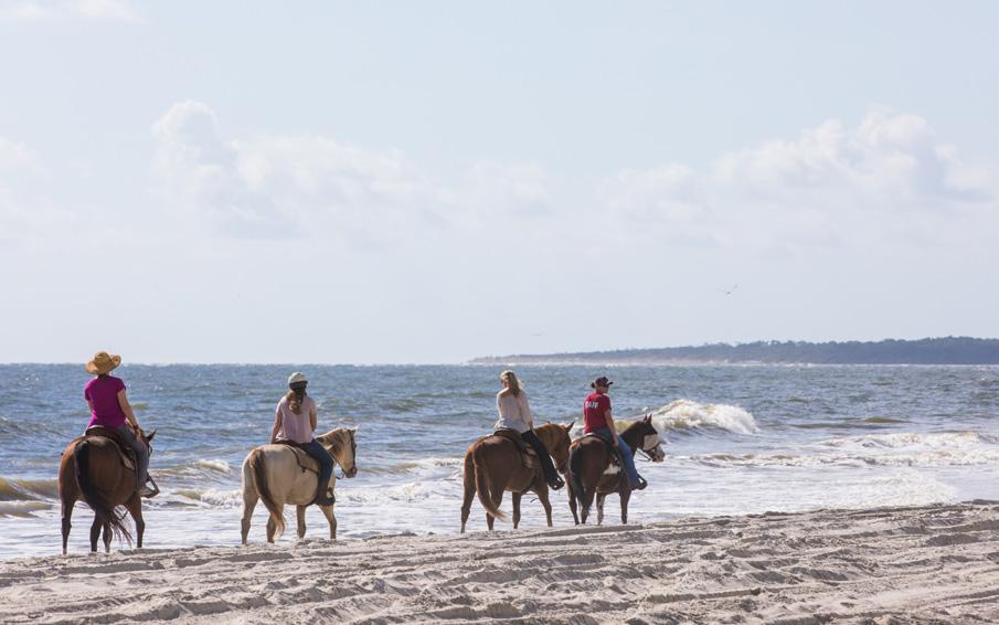 With all the charm of a small Victorianinspired town, diverse ecosystems, plenty of outdoor activities, a rich pirate history, and historical sites—they are home to the Palace Saloon, the oldest bar in Florida—you do truly feel like you are far away from it all. From sporting tournaments to music festivals and everything in between—we’re talking a Miss Shrimp pageant as part of the Isle of Eight Flags Shrimp Festival to celebrate the island’s shrimping industry—to the popular Amelia Concours d’Elegance, a showcase of rare cars from private collections around the world, plus Dickens-inspired streets during the holiday season, there is something for everyone.