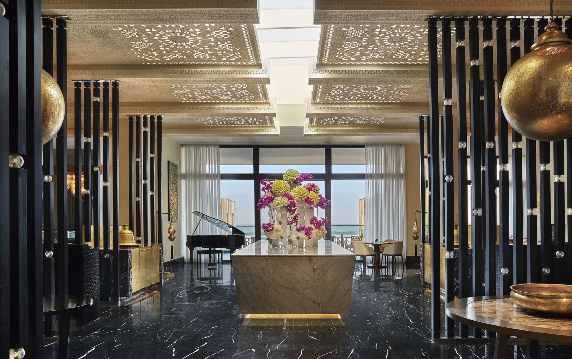 The ambitious hotel offers three on-site seaside restaurants. Bleu, the signature restaurant, has a menu inspired by its Atlantic location. It offers daily breakfast buffets and dishes featuring freshly caught seafood and fish. French executive chef Christophe Laplaza leans on Casablanca’s expansive coastal line for inspiration for his creative yet delicate menu. Featured dishes include the bisque shrimp with lemongrass rosemary jelly and cream cheese, the Atlantic fresh salmon with black rice herb jus, tomato, and paprika, along with other dreamy dishes curated from listening to the whispers of the sea.