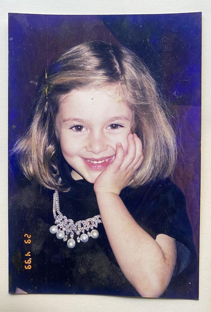 Below: My daughter, Rosie, age 5, with the Swan Lake necklace days before the 1999 Auction.