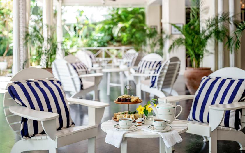 traditional, with perfect cucumber sandwiches, fruit, and pastries. Try the chocolate chip cookie and the tiny brownies, a decadent delight. Check out the black-and-white photographs of famous guests—such as the McCartney family and Ralph Lauren—from the past dotting the walls of the Round Hill’s Cocktail Bar, the perfect place for pre- or post-dinner cocktails, with sunset views and a musician tickling the ivories. Round Hill is Heaven. P roundhill.com
