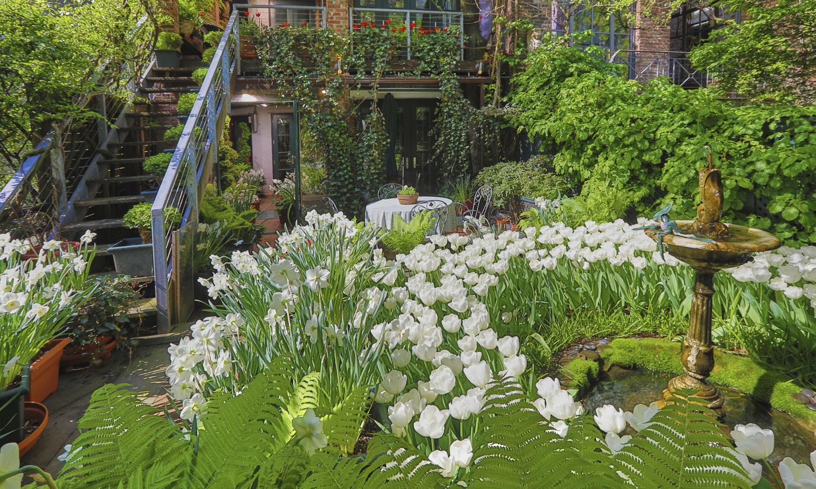 Tulips will fade out over time. So a good rule of thumb with tulips is you want to do a mass planting your first year for, let’s say, a backyard of a townhouse, you want to buy more than you think you can hold. So I would recommend 500 to 1,000 tulips. Then in following years replenish, adding 25-30% of what reemerges, and that will keep your tulip garden looking good. Narcissus - daffodils - naturalize. Once they’re done blooming, keep the vegetation around for six weeks to capture the sunlight, they should just start expanding. I call it walking. They walk across your garden, whether by seed, by an errant squirrel digging up a daffodil bulb and then replanting it somewhere else, or just by repropagating. Crocuses also come back to life, but squirrels eat them so you have to plant new ones every year.