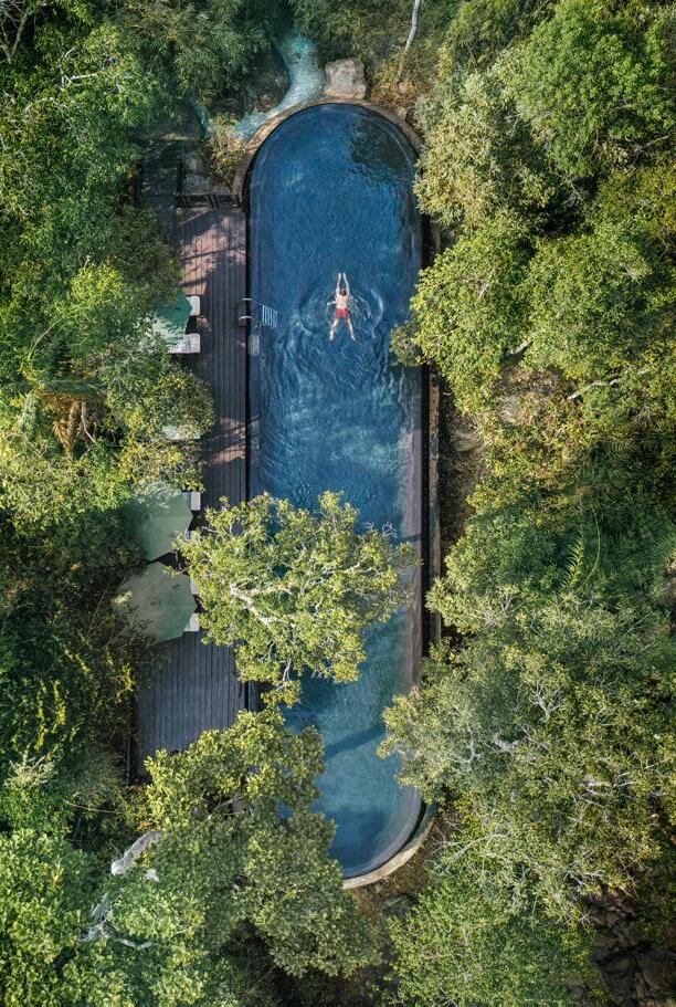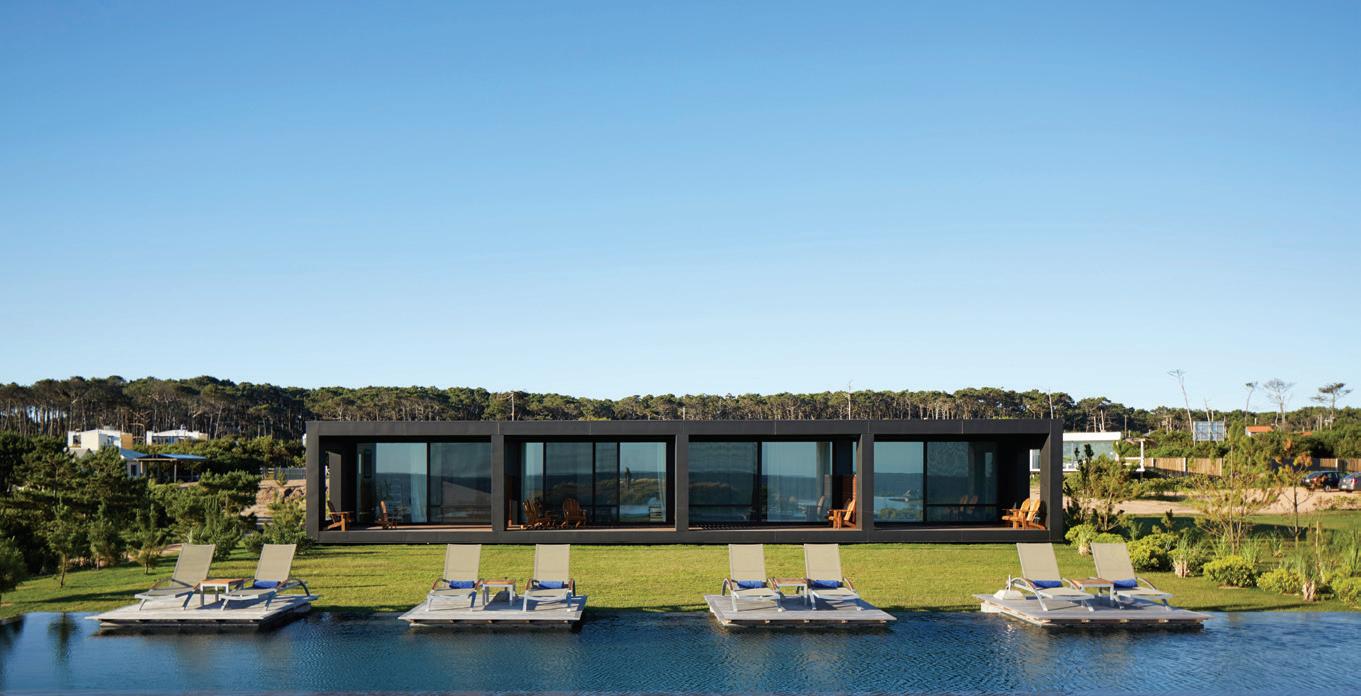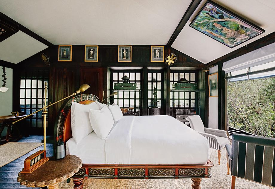 accommodations feature four standard guest rooms, two one-bedroom suites, one two-bedroom suite, and a luxurious two-bedroom penthouse. The spaces were carefully designed with local artistic expressions, plus soft geometric patterns, and natural wood paneling.
