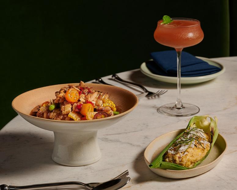 menu is served inside a retro Quonset hut filled with outdoorsy charm. The open woodburning fire adds smoky depth to dishes like charred octopus, crispy broccoli with chermoula (arguably the best broccoli you’ll ever have), and fire-kissed pork belly garnished with fresh blackberry and mint. Be sure to save room for dessert – the housemade s’mores toasted tableside will remind you that s’more flavor means s’more fun.