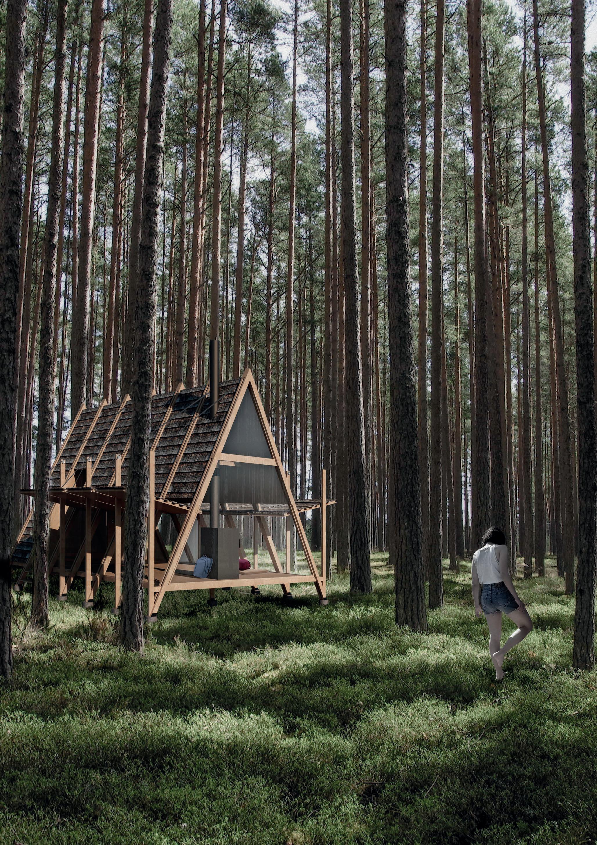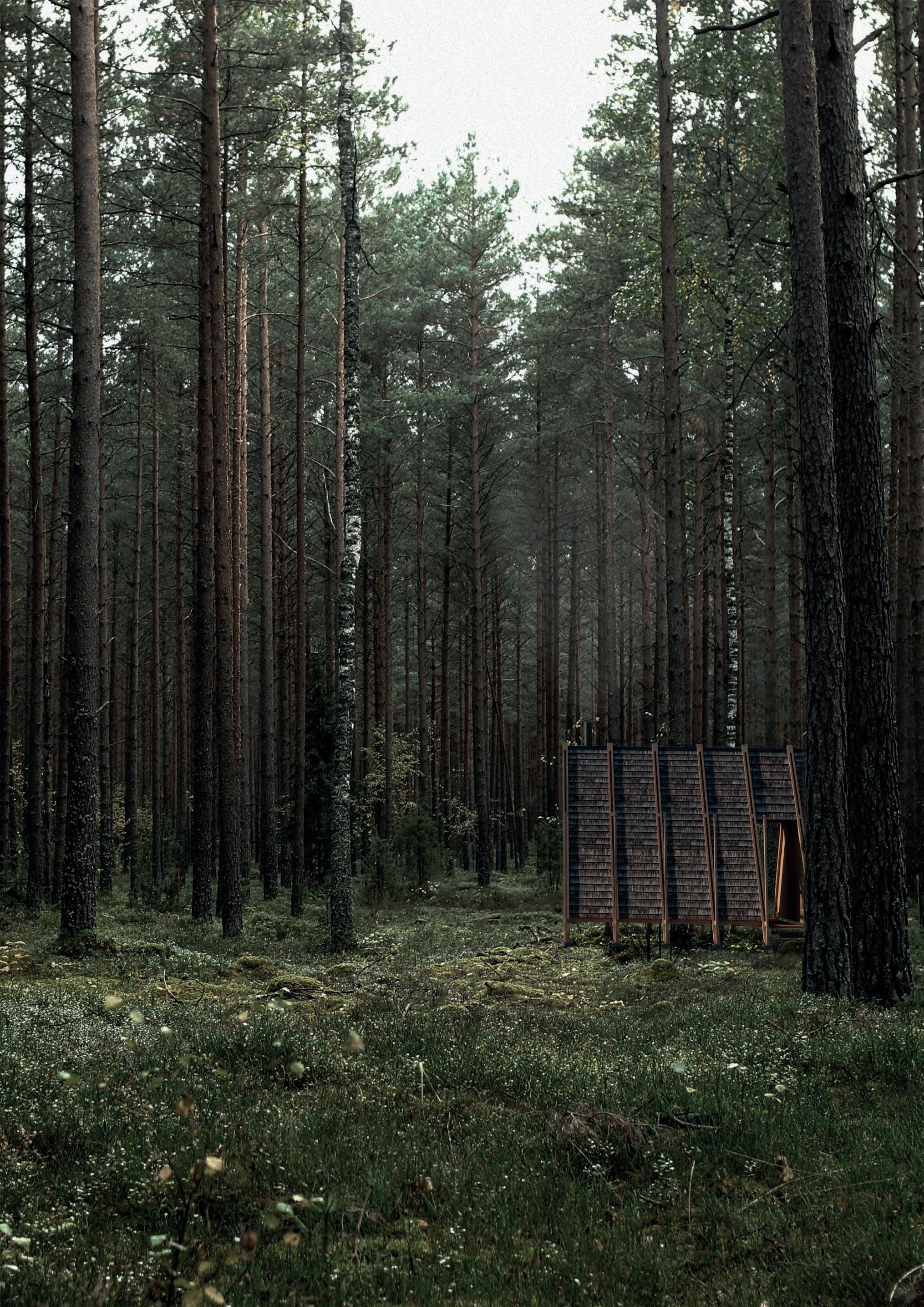 The competition seeks eco-friendly and cost-effective proposals for an easily- constructible and -replicable 15m² hut that could be sited in a series of forested locations across the Ozolini farm. The cabins are intended to provide users which a calm space to meditate while surrounded by the sounds of nature.
