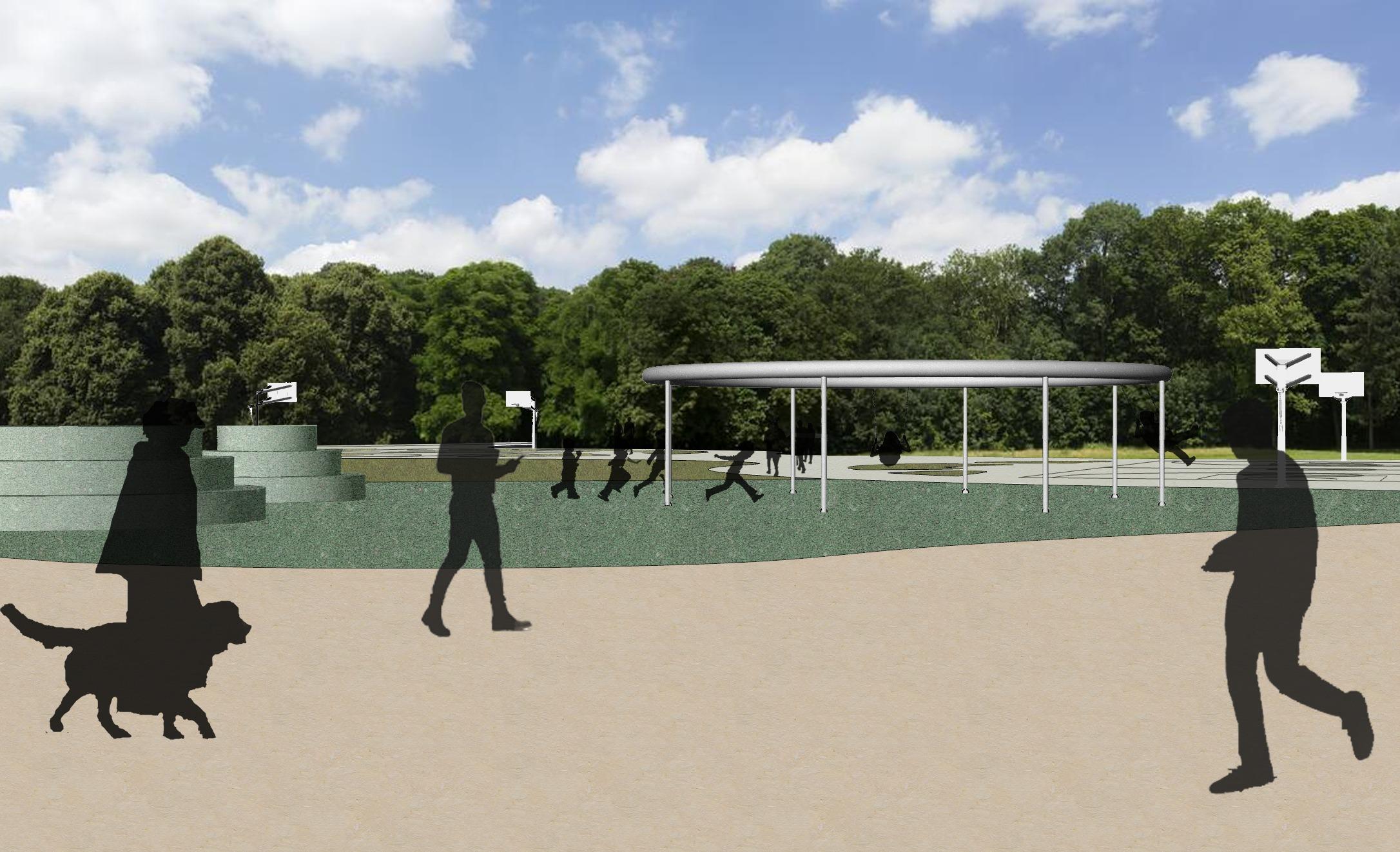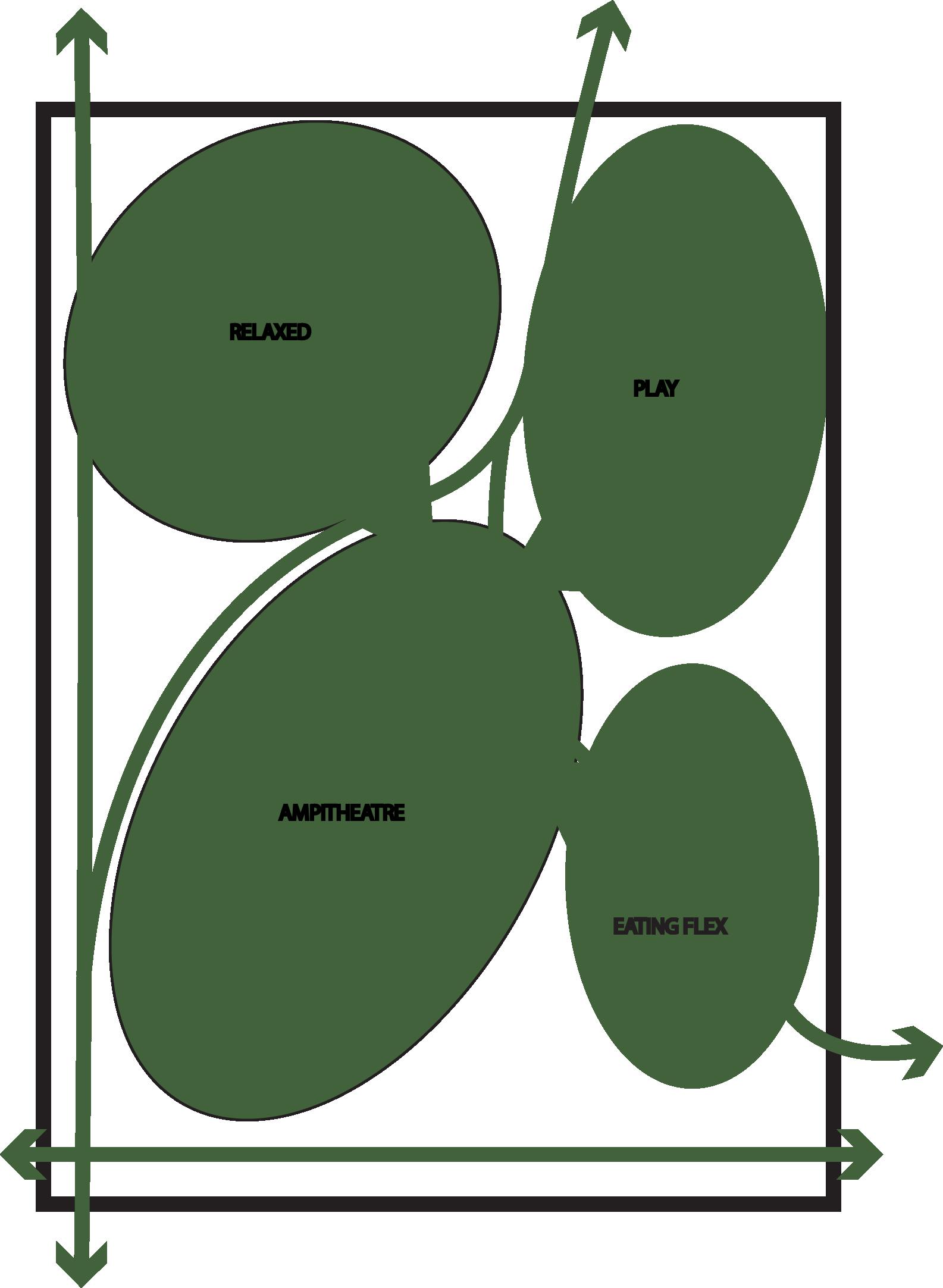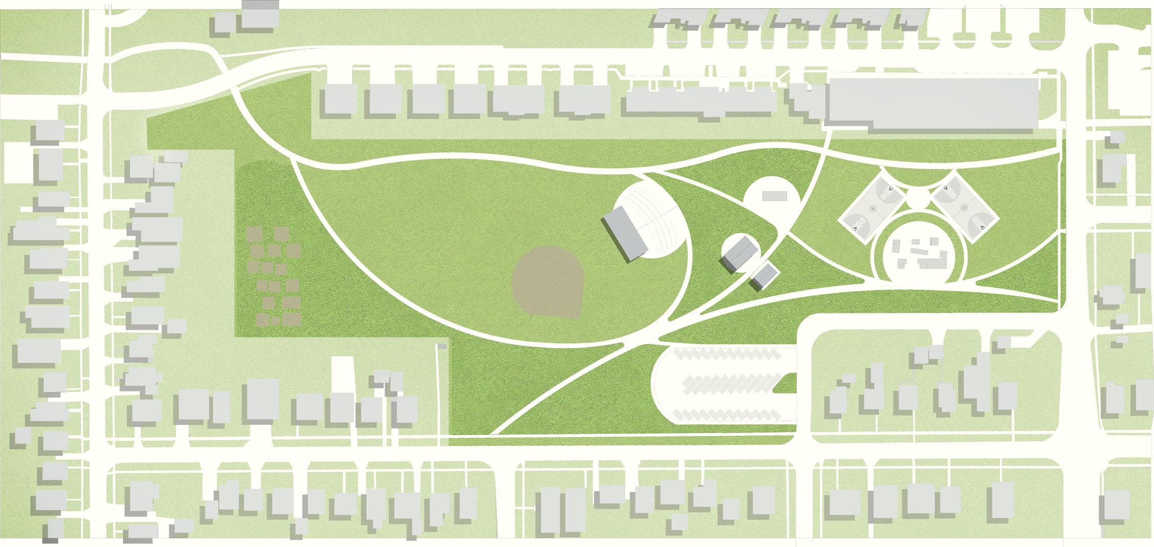 Working on this scale community engagement was emphasized. I started by asking questions about what the park needs To help I went to Lincoln Parks and Rec and City Impact which is the adja cent community center. We learned from Parks and Rec that this is very old and most of the paths in the park are soon to be torn up. Later we learned from City Impact the most needed additions and fixes to the park. This included making two full-sized basketball courts and an amphitheater. Also creating a bigger unified sheltered area with a bathroom close by. Also, a much-needed place is a gathering space which was designed into an amphitheater. To start this design I completely redesigned the pathway system and for this, I related it to central park by using arcs but for this park, I refined it to make a more modern ap proach. Next, I reiterated the arc with concrete bubbles coming off of the path to set the park amenities like the play ground, Skatepark, etc. To further assist in the arc movement, trees, including an arboretum, and prairies were added to separate spaces and to create secluded spaces.