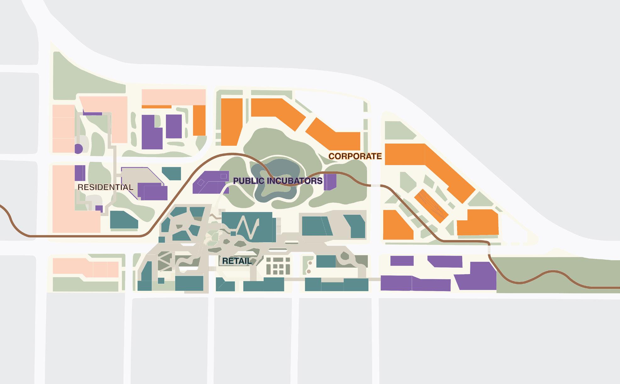 To create a more resilient and sustainable urban structure that promotes public health and well-being, enhances the urban ecology, and reduces the ecological footprint of the industrial/big box store park.