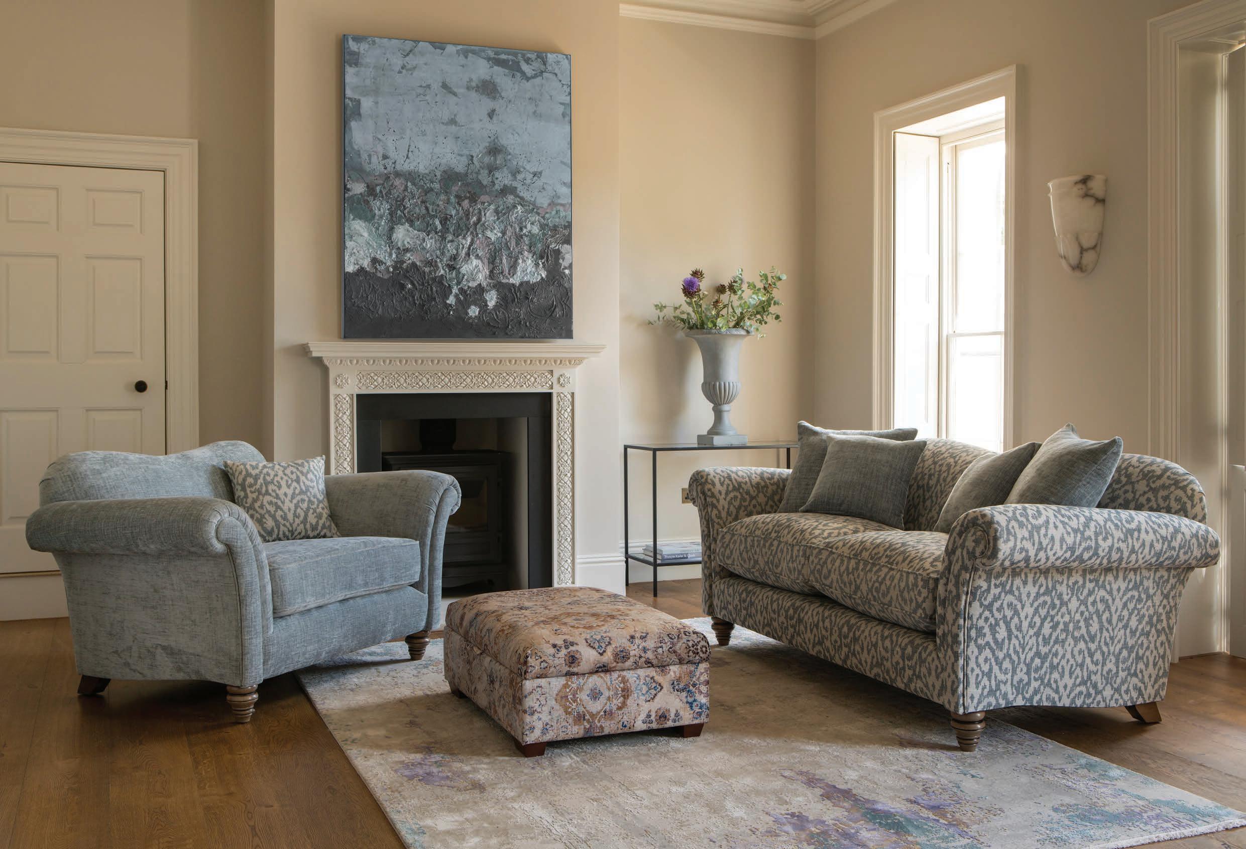 Beautifully proportioned and traditionally styled, Burghley is the perfect shape for detailed fabric designs and soft chenilles. Style in leather to add a classic look to your living room.