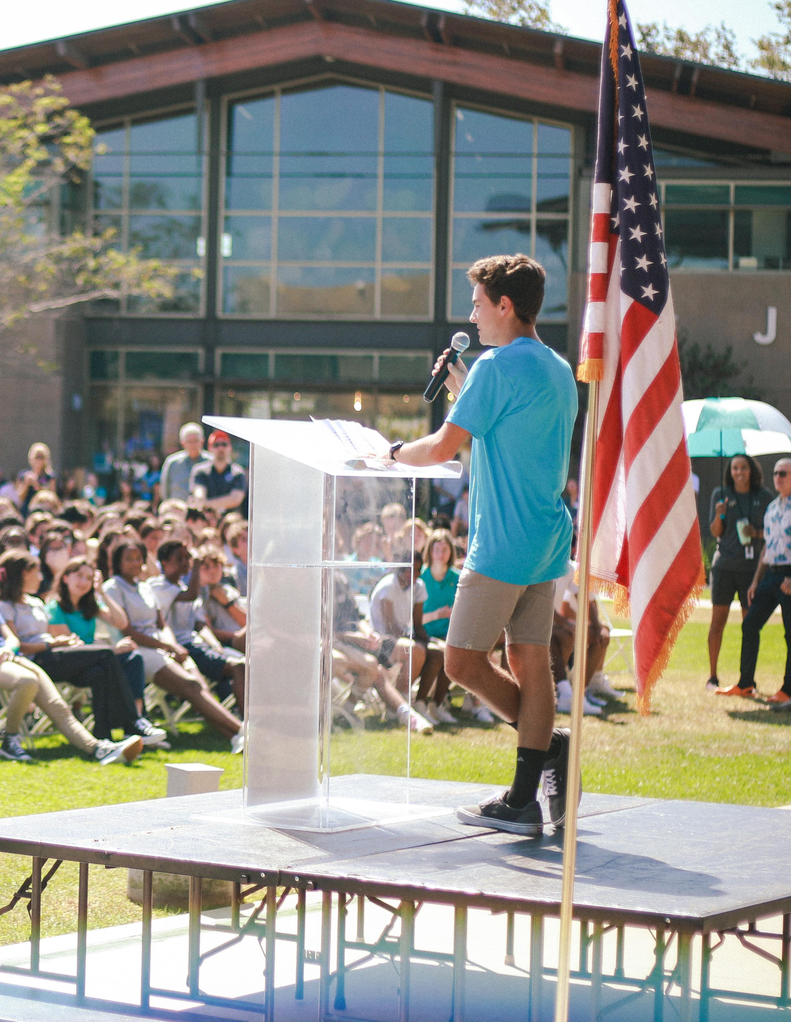 Middle and Upper School students, faculty, and staff gather for the Convocation ceremony to celebrate the beginning of the new academic year.