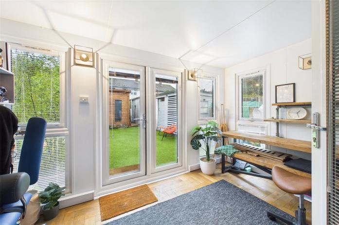 Externally, the property benefits from a driveway to the front, with a garage located to the rear and accessed via the garden. The south-west facing rear garden is a particular highlight, featuring a garden room and storage shed, as well as gated rear access leading to the front of the property.