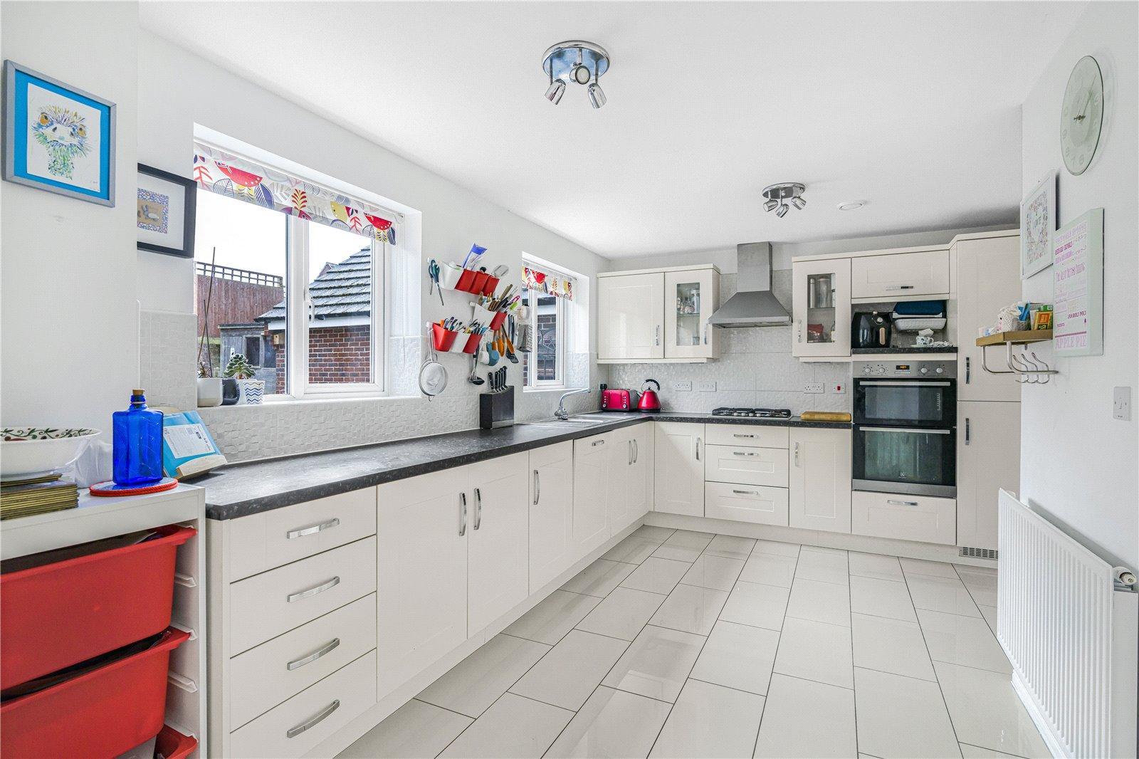 Ground Floor: From the light and airy entrance hall, there are doors leading to all aspects of the ground floor accommodation. To the left, a spacious living room with bay window, and to the right a study. Across the rear there is a beautiful kitchen/ dining room, boasting tiled floors, a range of units and French doors out onto the rear garden. Additionally, there is a well-proportioned utility room with side door, as well as a downstairs cloakroom.