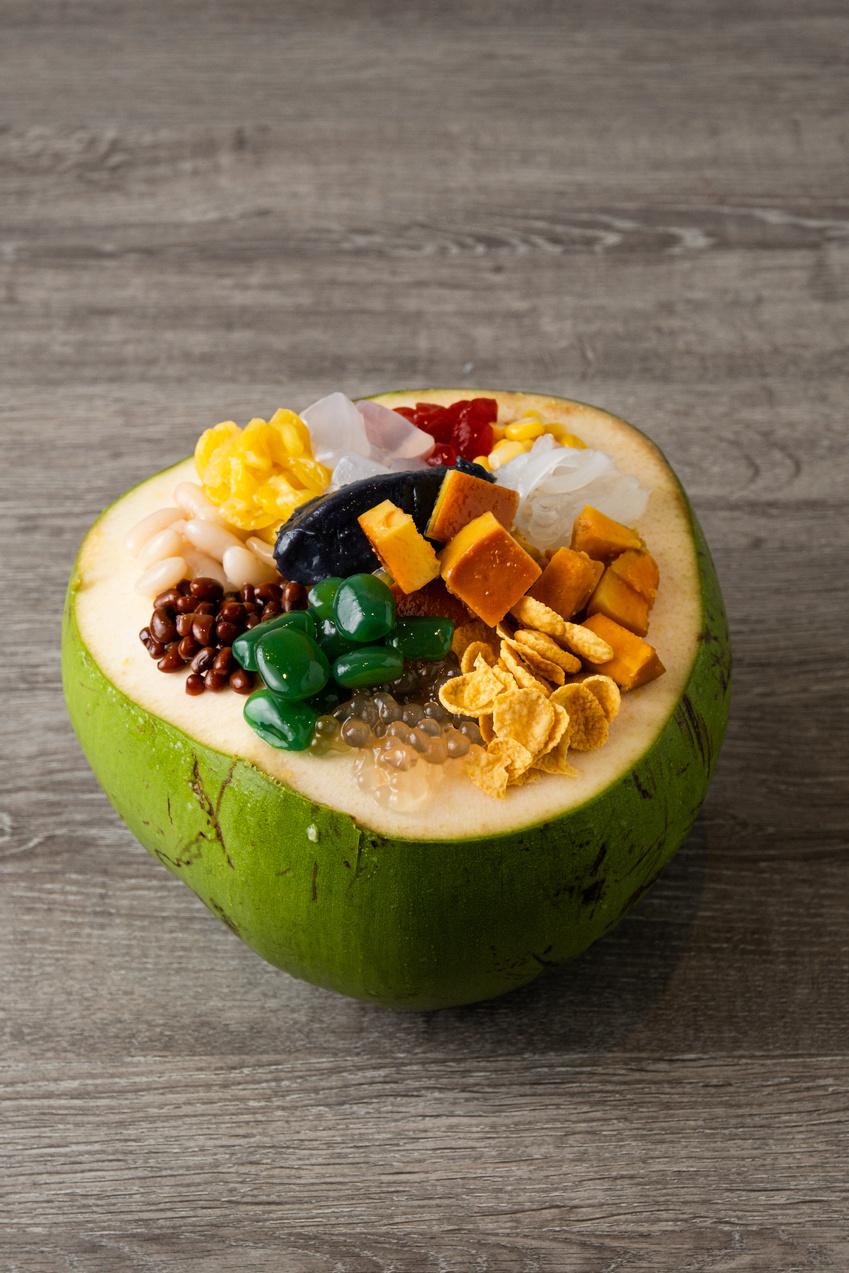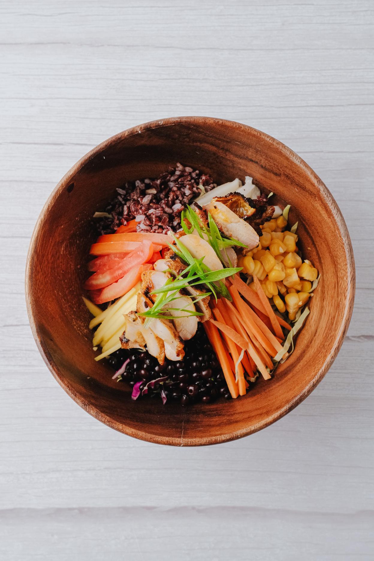 kadyos, corn, mango, organic black rice with salted egg dressing