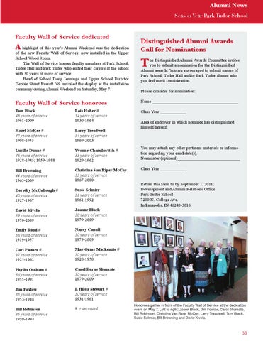 You may attach any other pertinent materials or information regarding your candidate(s). Nominator (optional)_____________________________ Class Year ____________ Return this form to by September 1, 2011: Development and Alumni Relations Office Park Tudor School 7200 N. College Ave. Indianapolis, IN 46240-3016