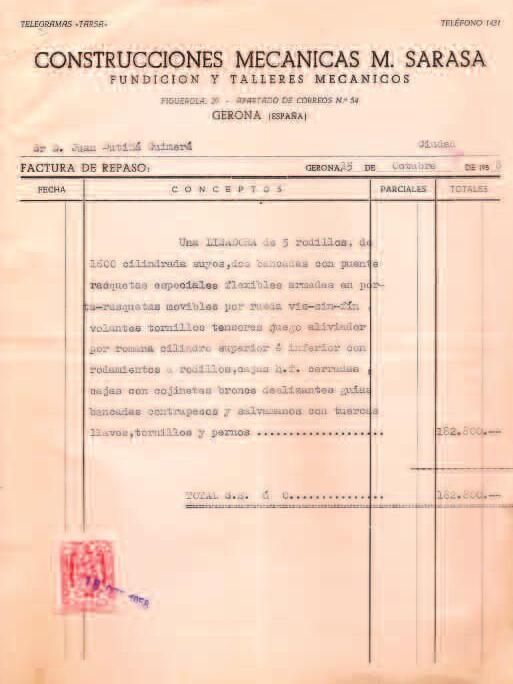 En el dossier d’història es pot resseguir el moviment d’aquesta empresa al llarg dels anys, atès que s’ha utilitzat documentació de la pròpia empresa i de l’arxiu municipal Les fotos antigues, de l’edifici, de l’antiga fonda Carreras, de la maquinària, ben segur que ens ajuden a reconstruir l’entorn Però és amb les fotos de les treballadores i treballadors com es pot prendre el pols a les relacions que hi havia hagut dins de l’empresa