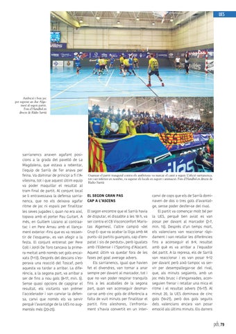 EL SEGON GRAN PAS CAP A L’ASCENS El segon encontre que el Sarrià havia de disputar, el dissabte a les 18 h, va ser contra el CB Visconconfort Maristas Algemesí, l’altre campió -del Grup E- que va acabar la lliga amb 44 punts -22 partits guanyats, cap d’empatat i sis de perduts-, però igualats amb l’Eldense i l’Sporting d’Alacant. Aquest últim va quedar fora de les fases pel goal average advers. Els sarrianencs, igual que havien fet el divendres, van tornar a anar sempre per davant al marcador, tot i que no van poder respirar tranquils fins a les acaballes de la segona part, quan van aconseguir desmarcar-se amb cinc gols de diferència a falta de vuit minuts per finalitzar el partit. Fins aleshores, l’enfrontament s’havia convertit en un inter-