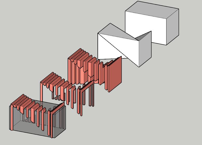First concept was to create aa waterfall like spiral to represent the feeling of anxiety and stress dripping off you. A feel of fluidity in the structure, however I realized afterwards that if one were to sit inside a spiral pavilion it might make one dizzy or increasers the feeling of stress. Therefore, going for a more structure stiff piece was better to represent a strong mind and thoughts.