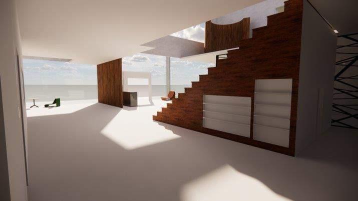 Micro cement for the public portion. Micro cement is a coating applied to a surface then sealed off for varnish, this material gives the space a minimalist aesthetic. This finish is not affected by heat or rain.