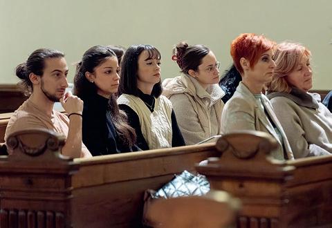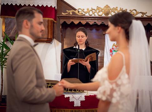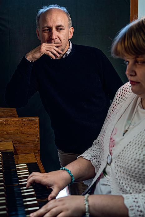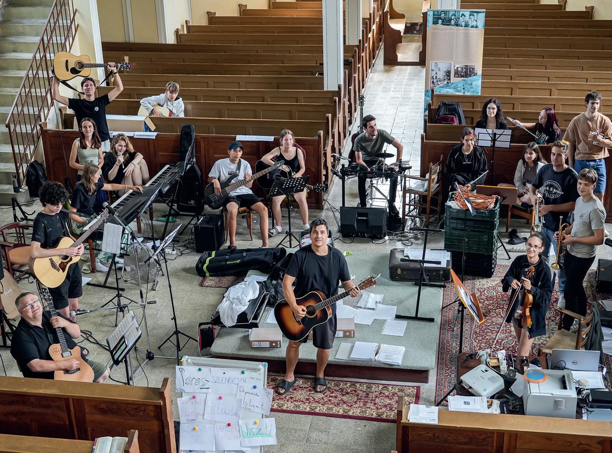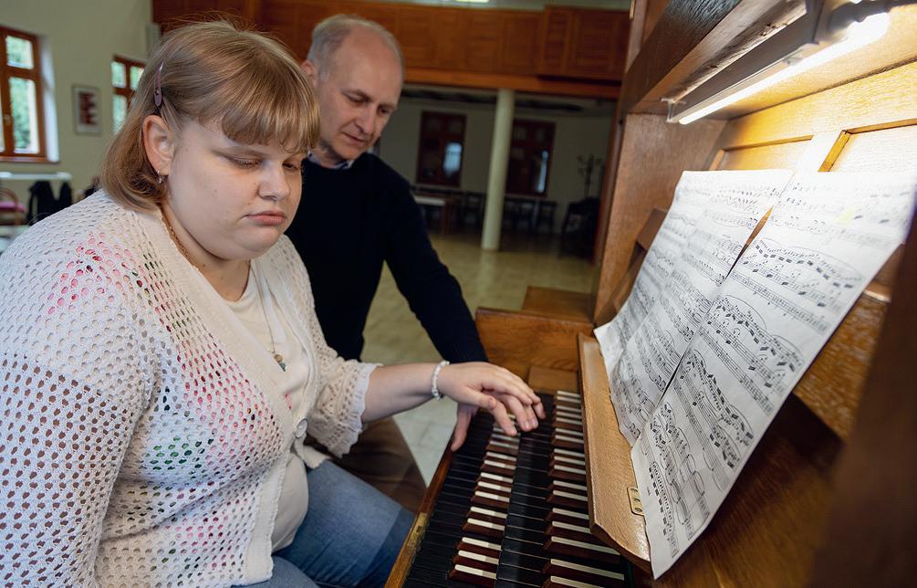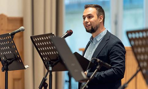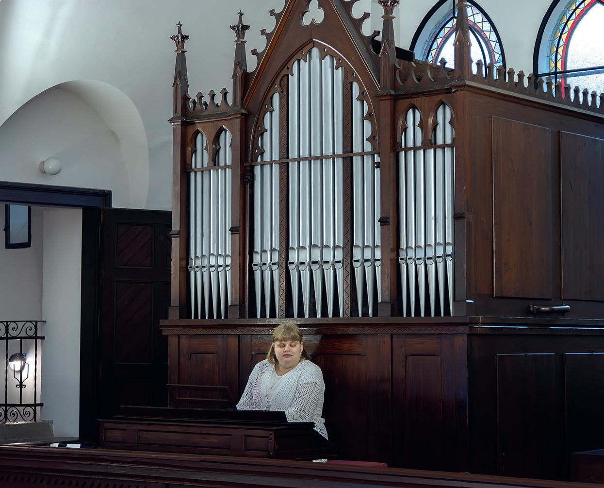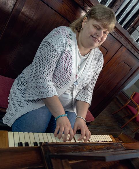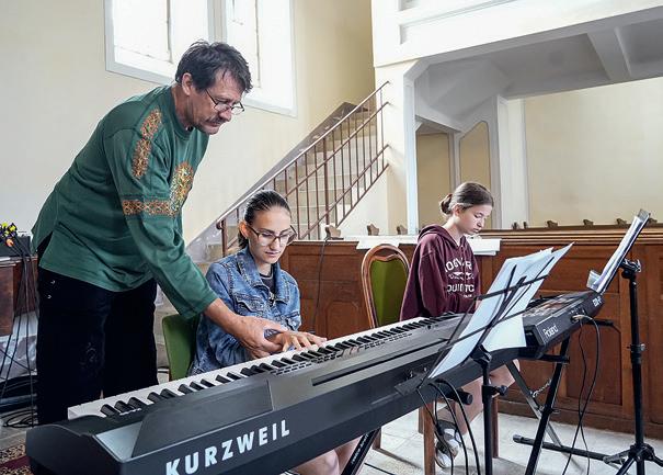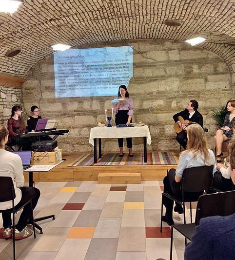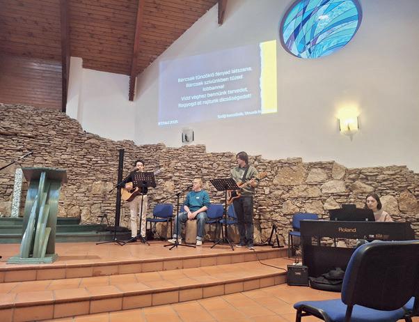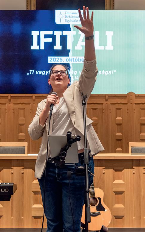 Erős Laura kántor kotta nélkül kíséri a gyülekezetet
