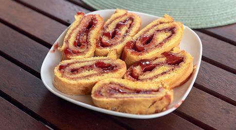 A megkelt tésztát három részre osztjuk. Az első részt kb. 30×40 cmes téglalappá nyújtjuk, sütőpapírral kibélelt tepsibe simítjuk. Megkenjük a lekvár felével, majd rászórjuk a diós töltelék felét. Ugyanezt megismételjük a második kinyújtott lappal is, majd a harmadik lappal befedjük. Addig hagyjuk kelni, amíg a sütő hőlégkeverésen bemelegszik. 35 perc alatt 180 fokon készre sütjük. A tepsire deszkát borítunk, majd gyors mozdulattal feje tetejére állítjuk, és a deszkán a süteményt hűlni hagyjuk.